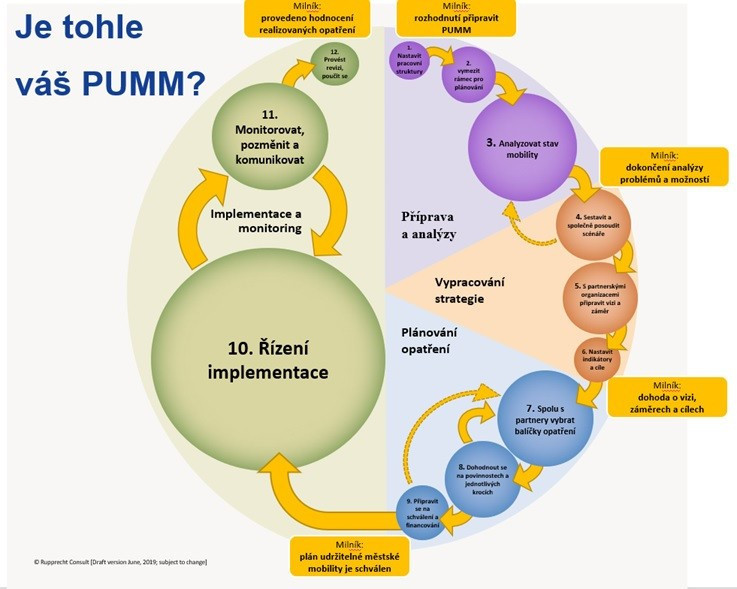 Mnoho měst má již zpracován PUMM, ale jen málo má koordinátora mobility, či vytvořenou pracovní skupinu pro implementaci PUMM. Záleží samozřejmě na velikosti obce, ale už i menší města by měla v tomto ohledu investovat a vymezit odboru dopravy zodpovědnost za projekty spojené s rozvojem infrastruktury tak, aby řešil skutečně dopravu jako takovou. Oddělení zaměřené čistě na dopravu a mobilitu se dlouhodobě vyplatí, obzvláště v případě, že si město nechá zpracovat Plán udržitelné městské mobility – kontrola a monitoring, plánování dalších kroků. Za tímto účelem je vhodné definovat strukturu na úřadě nazvanou „Koordinátor mobility“.